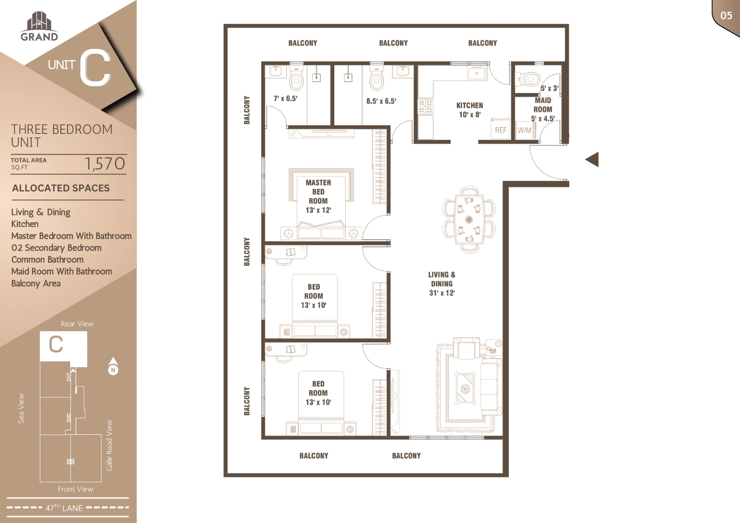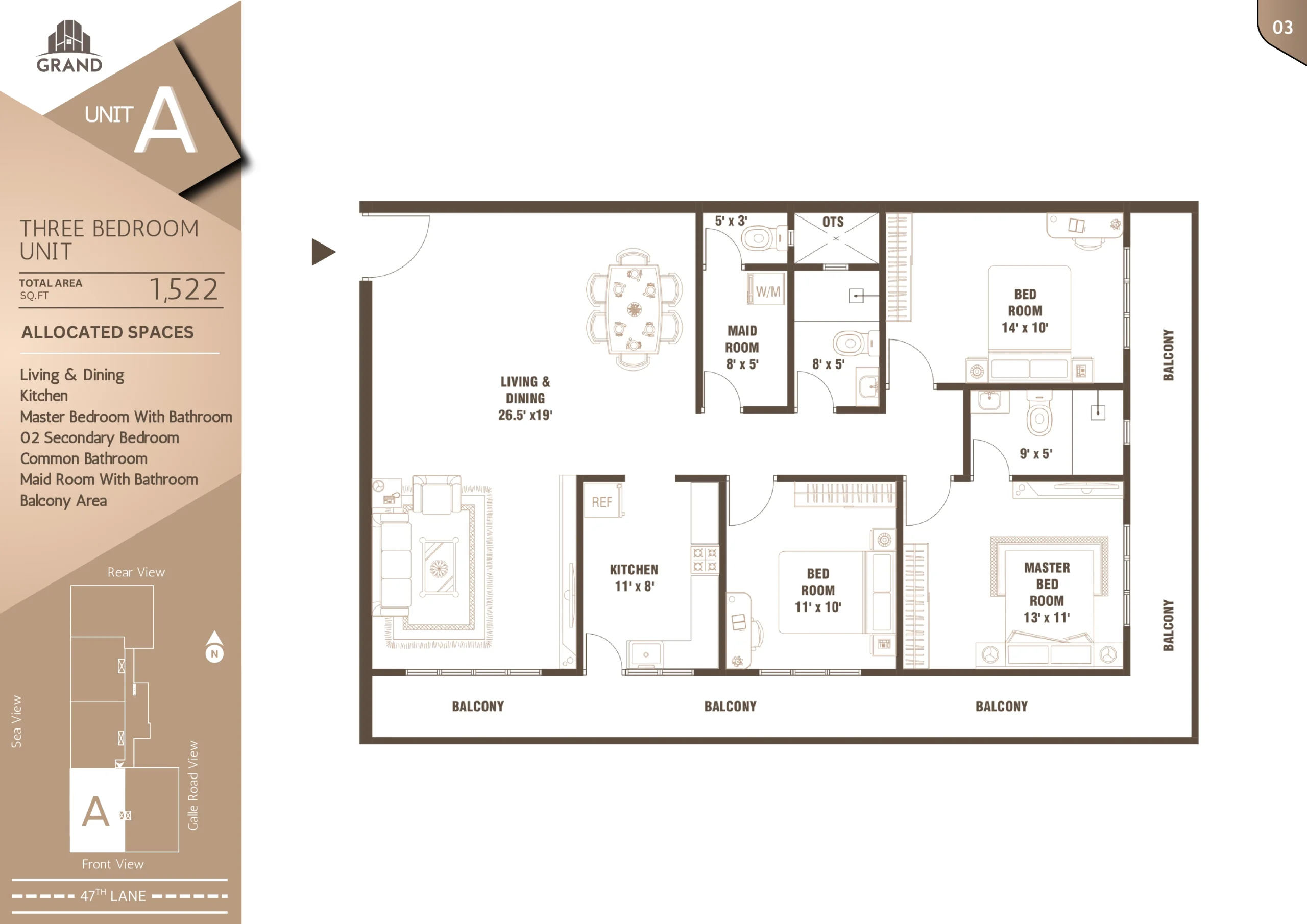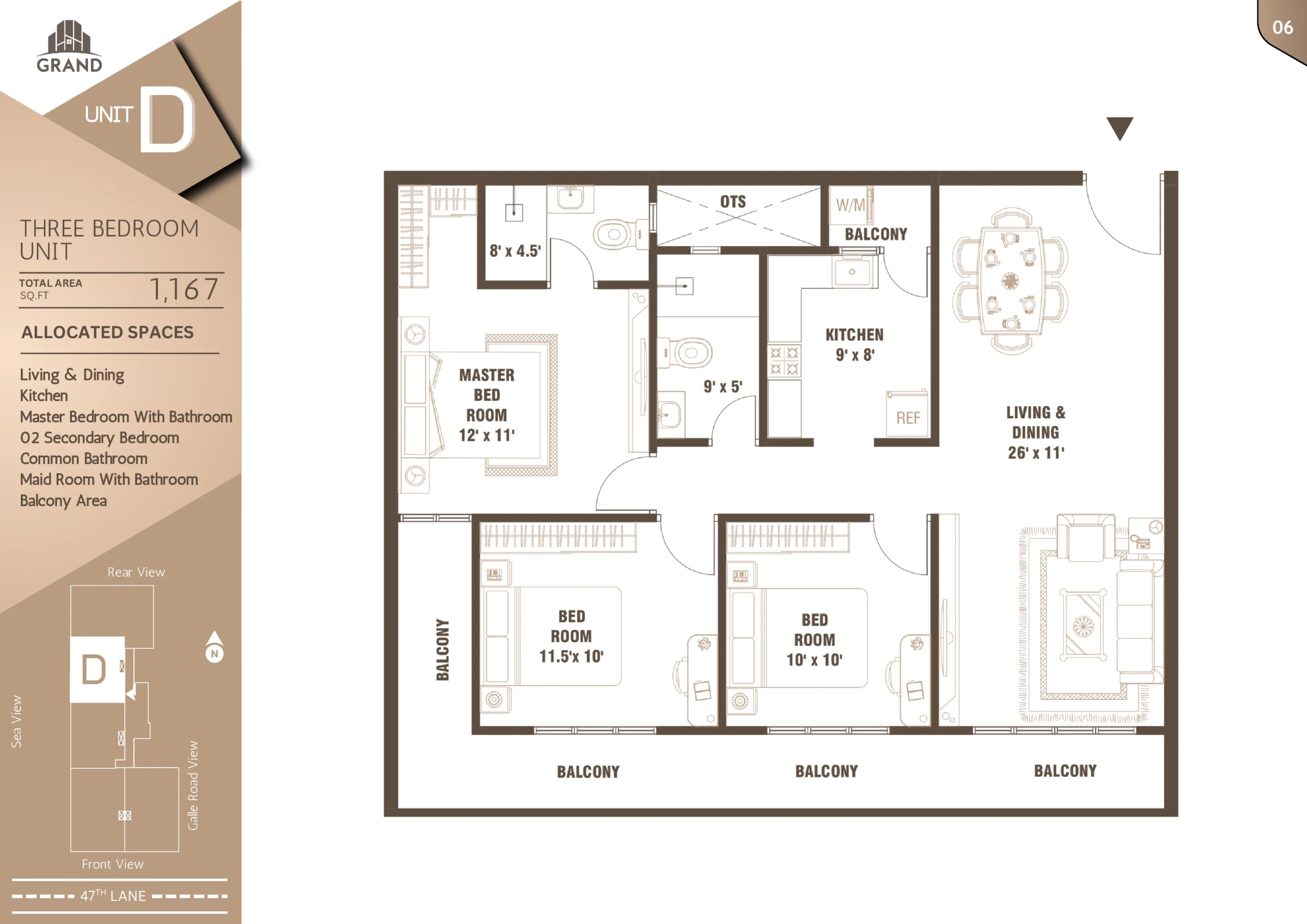 Nestled just 100 meters off Galle Road on 47th Lane, Grand Edge offers a rare balance of urban accessibility and peaceful living. Located in the heart of Wellawatte, Colombo 06, this exclusive development features 90 well-designed 3-bedroom apartments spread across 22 floors.